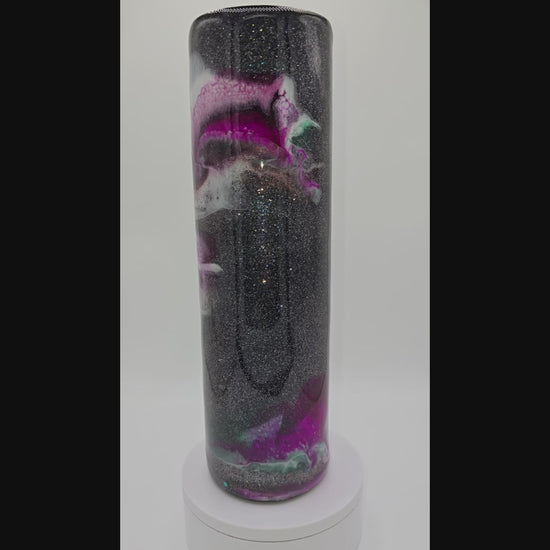 Black Base with White, Magenta, and Gold Swirl Cup